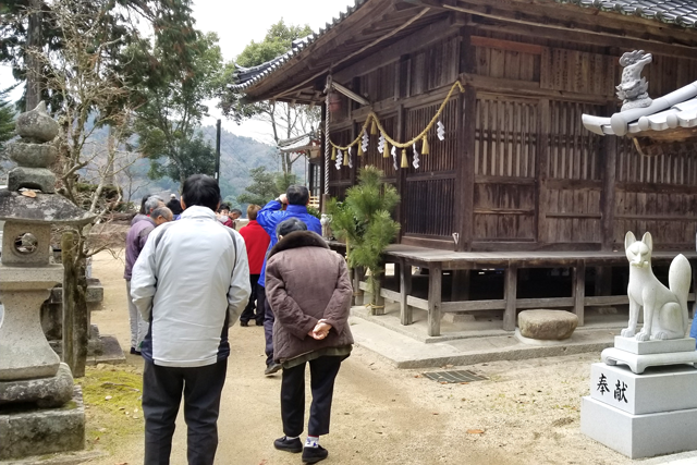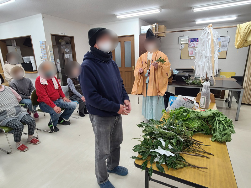 年の暮、神主の方に来ていただき神事を執り行いました。みなさん、緊張した様子。一人ずつ玉串を奉納し、無病息災をお祈りしました。