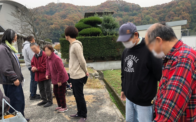 座学の場面では、避難訓練を振り返り、「避難場所まで遠い」「トイレが心配、マップがあるといい」「避難途中に道が崩れて通れんようになったらどうするんかなー」「道が悪かったら、車いすの人が避難するのが難しい」など、利用者さんからの真剣で活発な意見が出ていました。