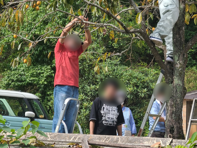 柿の収穫をしました どんぐりでは、今年は枝いっぱいに柿の実がなりました。 天気の良い日にみんなで収穫に行きそれを、みなさんで 美味しくいただきました。 今年はお米や栗など豊作の年であったようで、自然の恵みに感謝です。