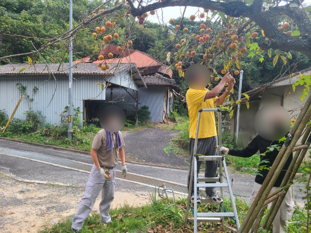柿の収穫をしました どんぐりでは、今年は枝いっぱいに柿の実がなりました。 天気の良い日にみんなで収穫に行きそれを、みなさんで 美味しくいただきました。 今年はお米や栗など豊作の年であったようで、自然の恵みに感謝です。